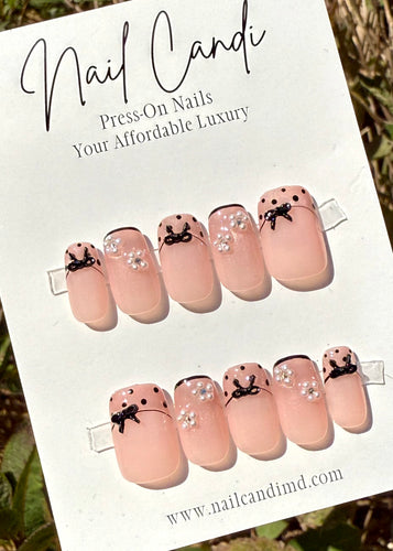 Handmade Medium Square Polka Dot French Nails