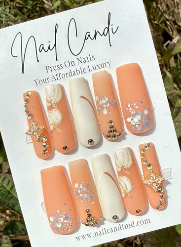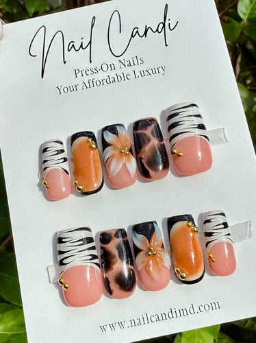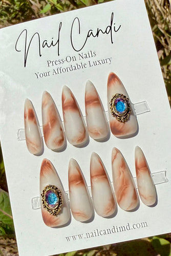 Handmade Long Stiletto Nude & Brown Stud Nails