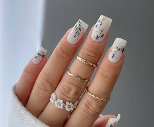 Lydia | Medium Square Matte Frost White Floral Nails