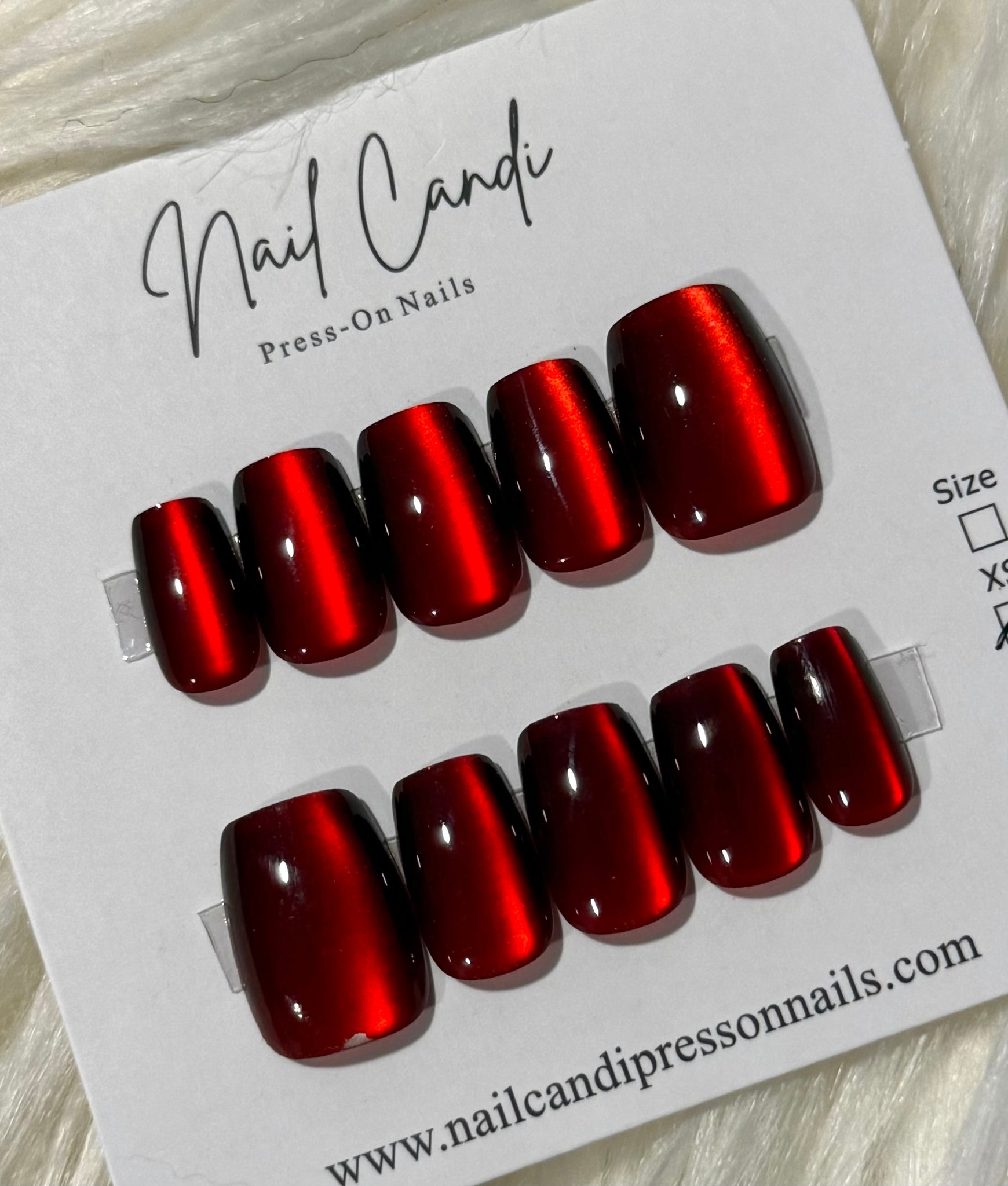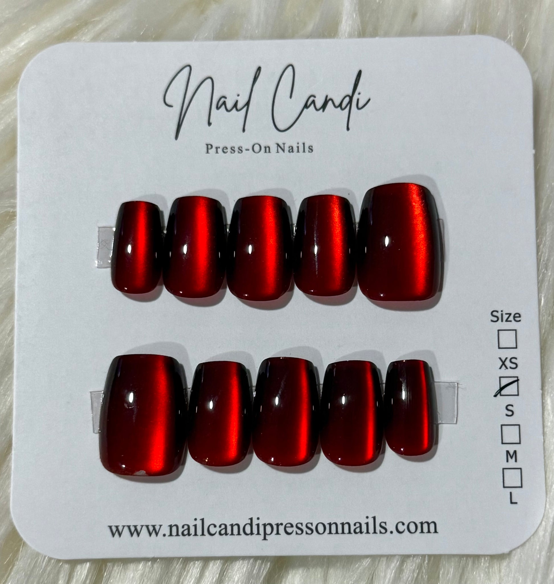 Semi-Handmade Short Cranberry Red Cateye Nails